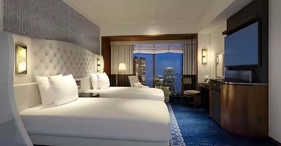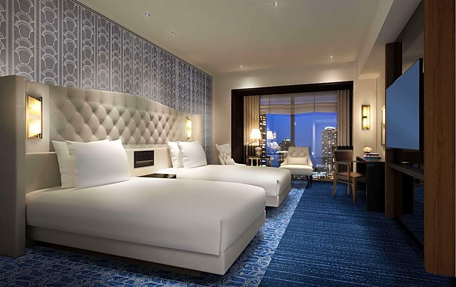 Providing free toiletries and bathrobes, this double room includes a private bathroom with a bath, a shower and a bidet. The spacious air-conditioned double room provides a flat-screen TV, a tea and coffee maker, a safe deposit box, pajamas as well as city views. The unit offers 2 beds.